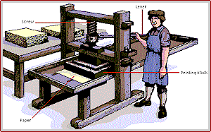 | One of the life-changing inventions was the printing press. Johann Gutenberg created a printing press with movabable metal type containing letters, numbers, and symbols, and in 1454, printed multiple copies of a leter. the invention of the printing press allowed millions of inexpensive paper copies to be made quickly and easily.Gutenburg's press was the photocopy machine of the 15th century. today, printing presses allow millions of books, newspapers, and magazines to be mass produced every day. | ![]() |